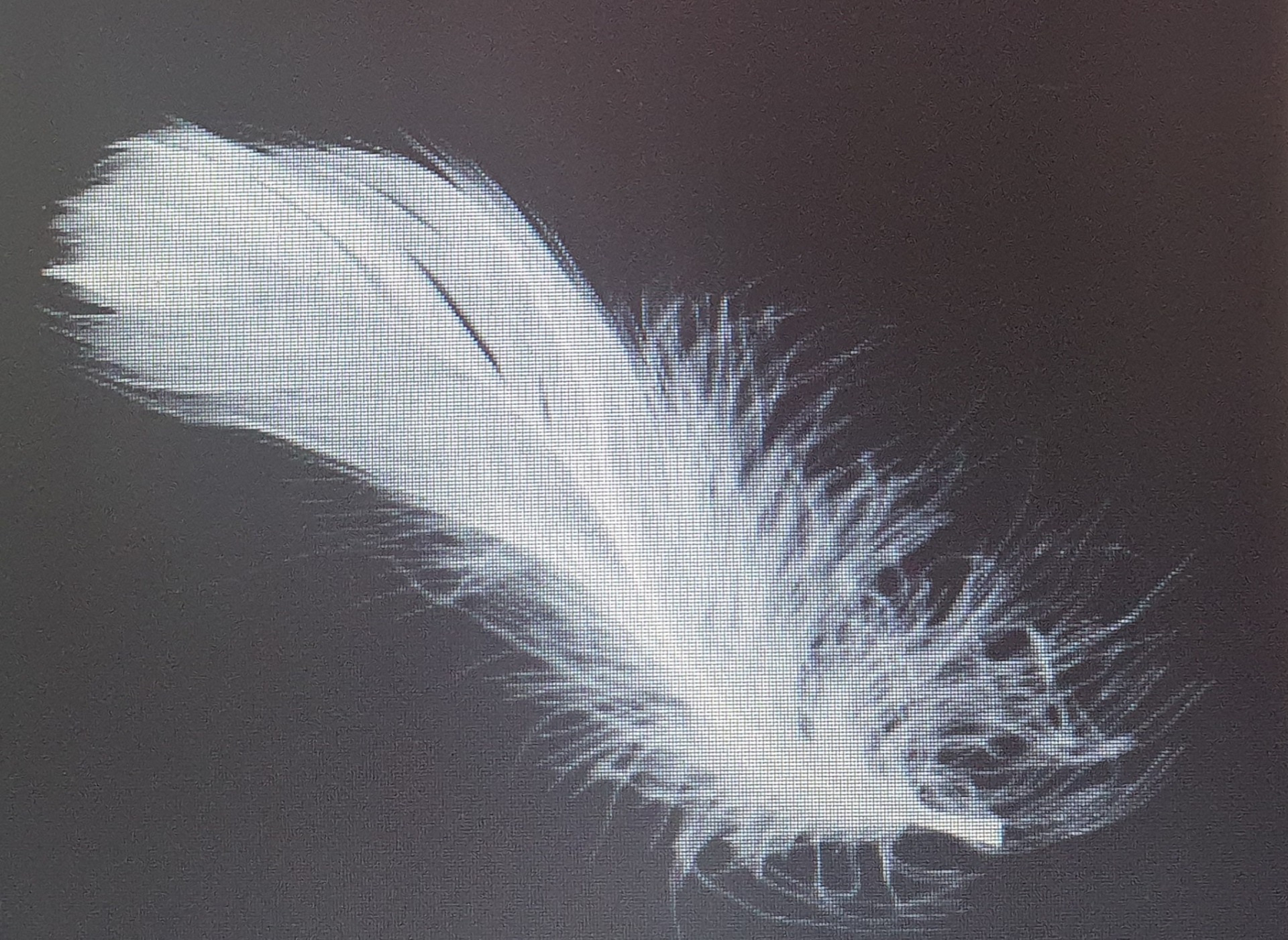 Vous la voyez qui descend peu à peu d'un ciel d'un bleu parfaitement limpide. Sur ce fond de ciel bleu, la blancheur de la plume éclate.